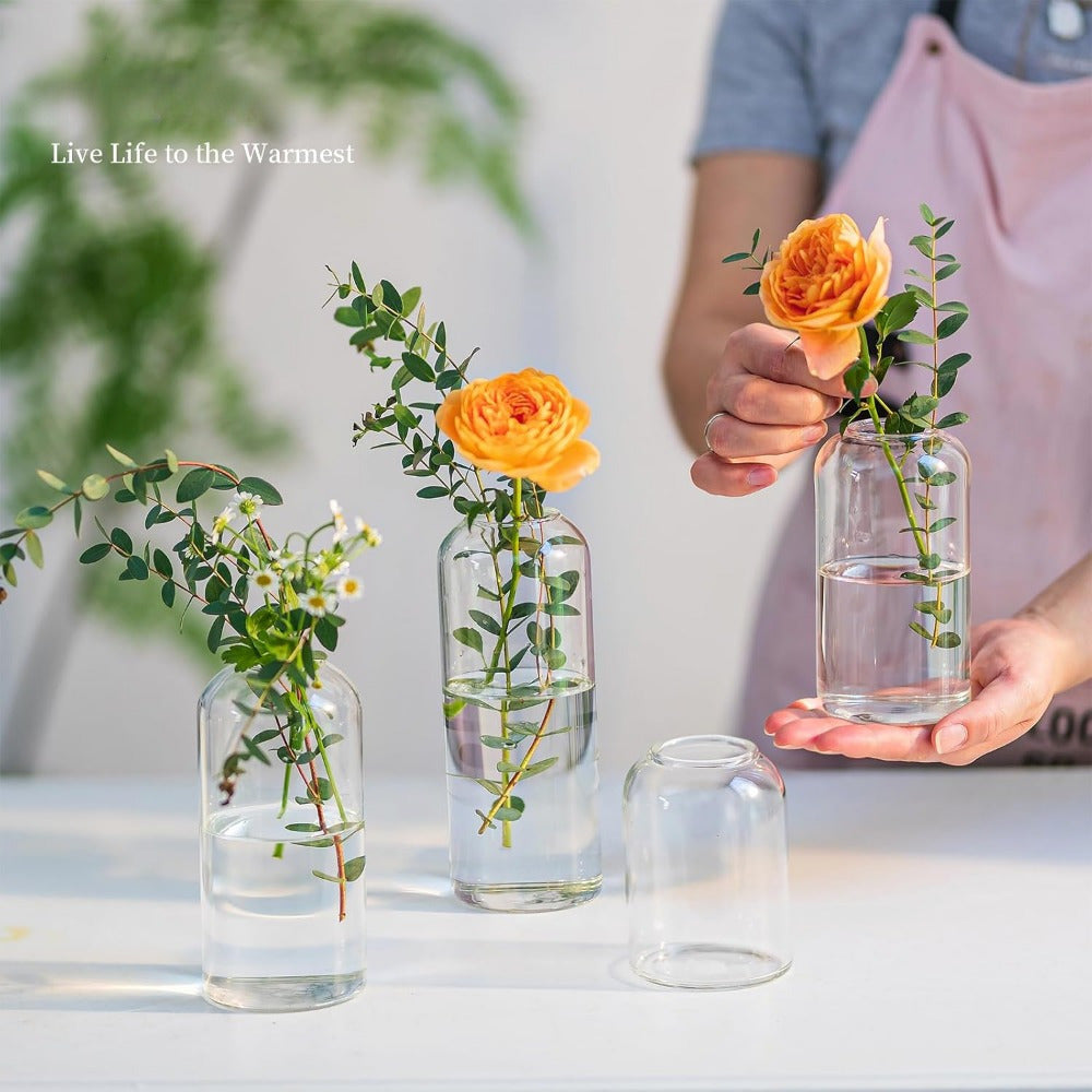 Glass Bud Vases for Flowers Blown Modern Small Glass Vases for Centerpieces Set of 12, Mini Clear Bulk Flower Vases for Wedding Party Events Home Decor Floral Arrangement Not Include Flower